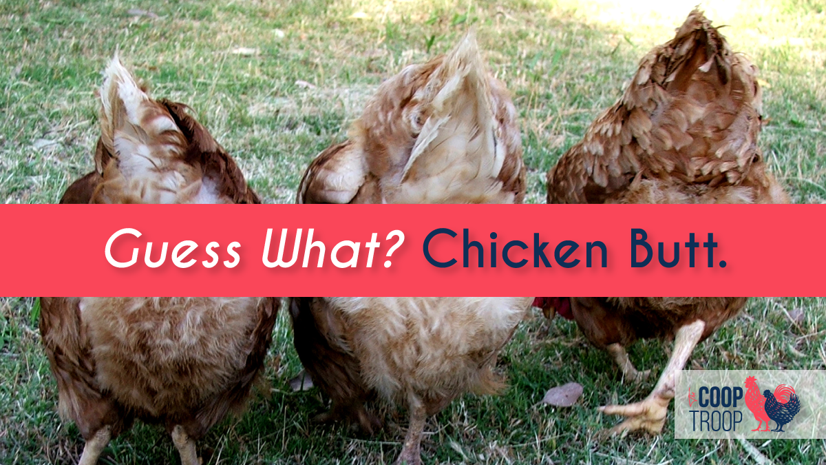 - Chicken Butts – In addition to the cleared areas and deck, our chickens have also found “safe spots” right next to our house – specifically in front of our basement windows where they like to spend a majority of their days. This means at any given moment a glance at a window in our basement means a view of chicken ass lineup from side to side. I don’t know if you’ve ever seen a chicken butt, but it IS NOT pretty, I mean eggs come out of those things. Do yourself a favor and DO NOT search chicken but.